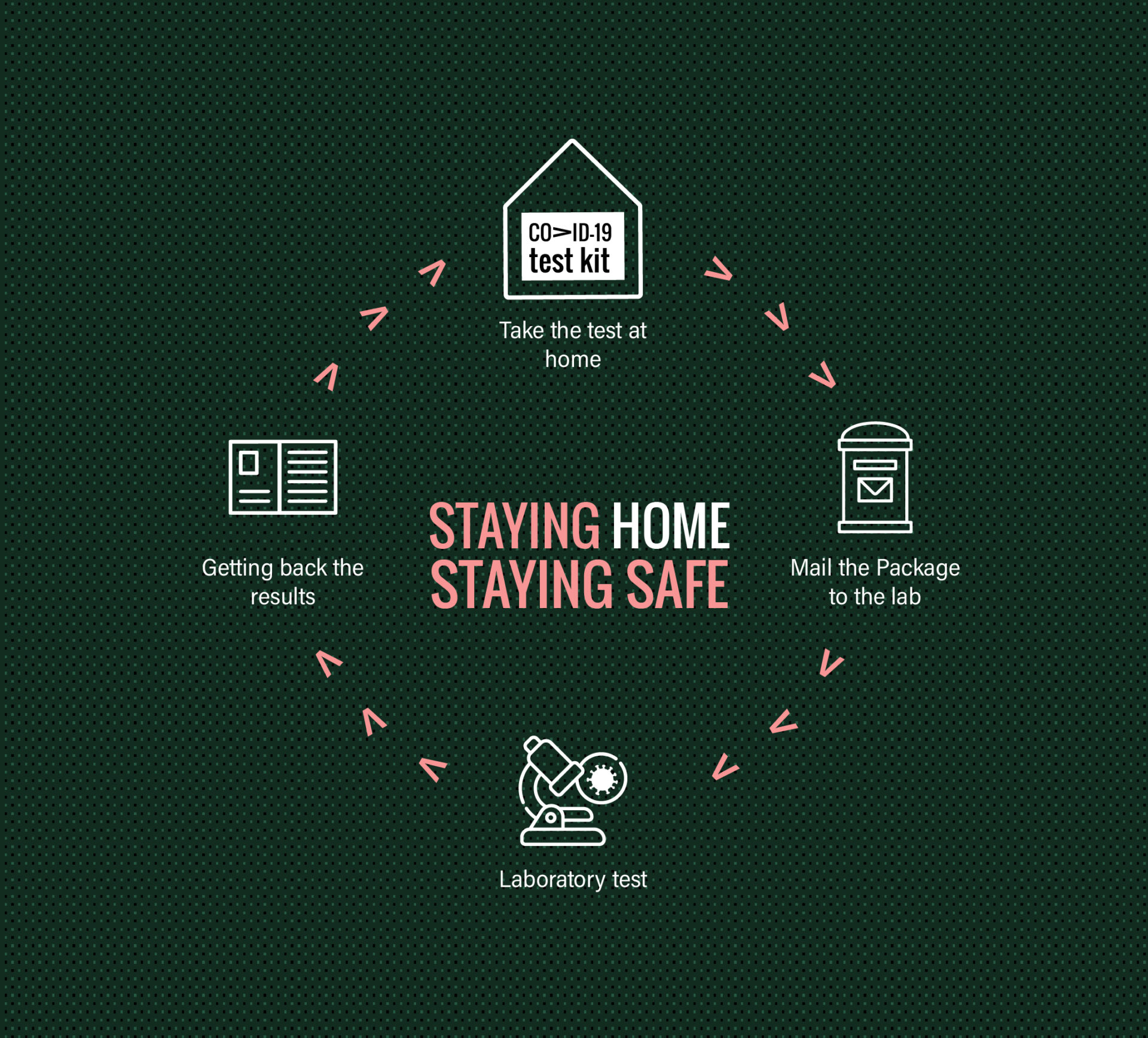 בפרוייקט הזה שהיה אחד מתוך, אפשר לראות אריזה ביתית לבדיקת קורונה. לאחר ביצוע הבדיקה, האריזה נשלחתבחזרה למעבדה לקבלת תוצאות מהירות. בגב האריזה ישנה מדבקת משלוח למעבדה.