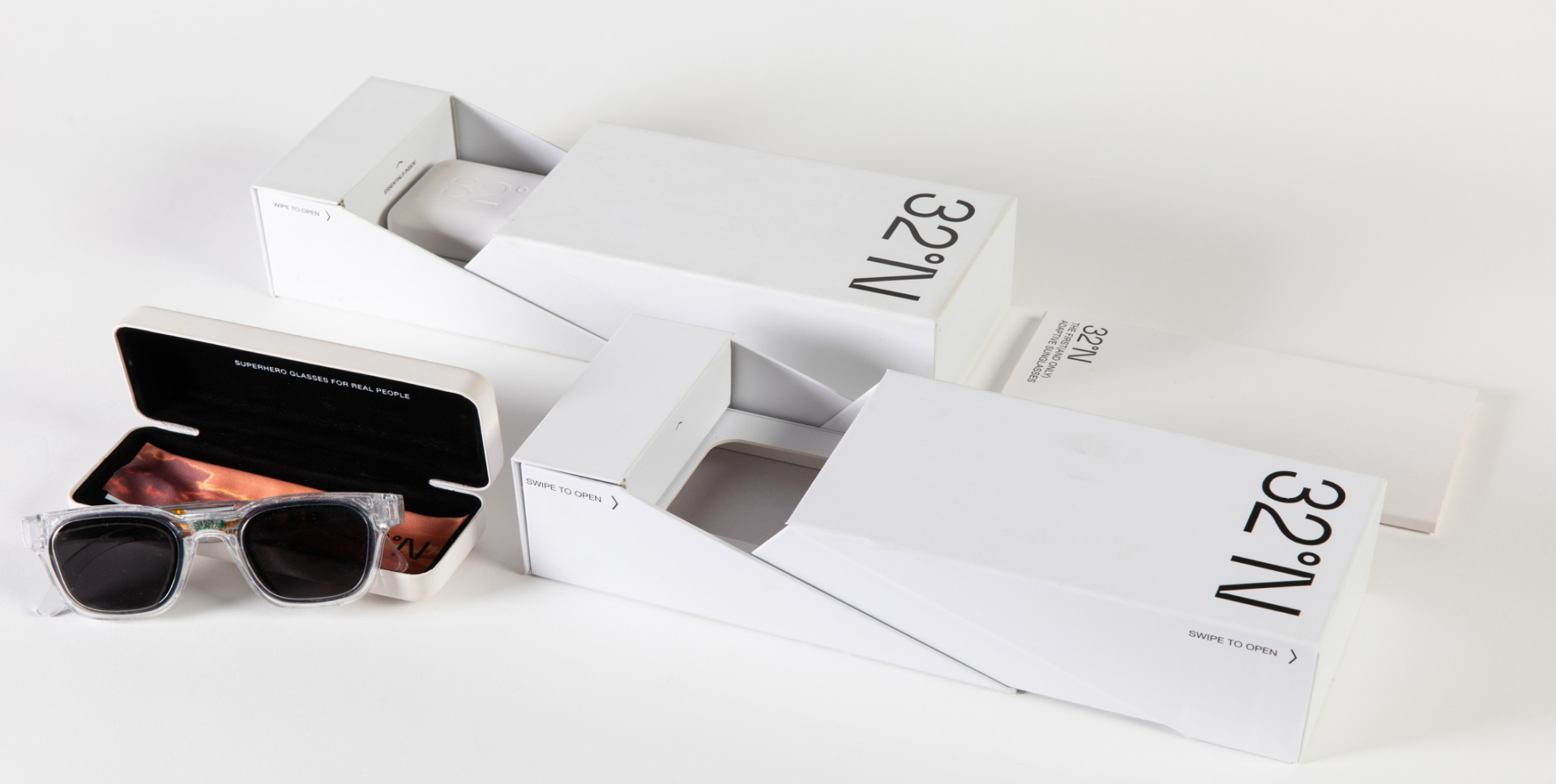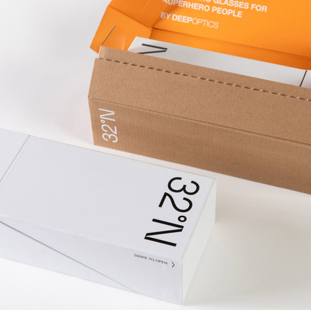 עיצוב אריזות, עיצוב גרפי, חוויית אנבוקסינג, הפקת אריזות, תכנון אריזה32N מבית Deep Optics הם לא רק עוד זוג משקפי שמש. בלחיצה אחת הם מתאימים עצמם למשקפי ראיה מותאמות אישית ללא מרשם. האתגר של NotFromHere היה לעצב אריזה המשקפת את המעבר החלק הזה.
