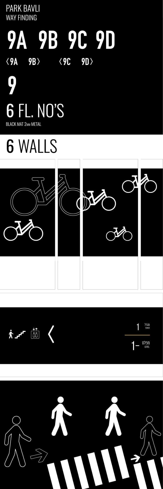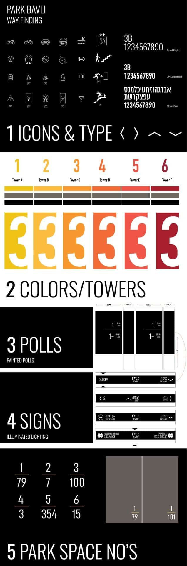 האתגר היה לפתח מערכת שלמה לחוויית החניון — שפה טיפוגרפית, צבעונית ואייקונוגרפית ייחודית, שממשיכה את הזהות של מגדלי בבלי גם מתחת לפני הקרקע. התפיסה הייתה להפוך את החניון למסע בתוך “ספר טיפוגרפיה”: כל אלמנט מתוכנן בקפידה ליצירת התמצאות ברורה, תחושת ביטחון וסדר, תוך שמירה על מראה מודרני. כך יצרנו סביבת תנועה פונקציונלית וחכמה, שמשדרת את אותה רמה של יוקרה וזהות שמאפיינת את המגדלים עצמם.