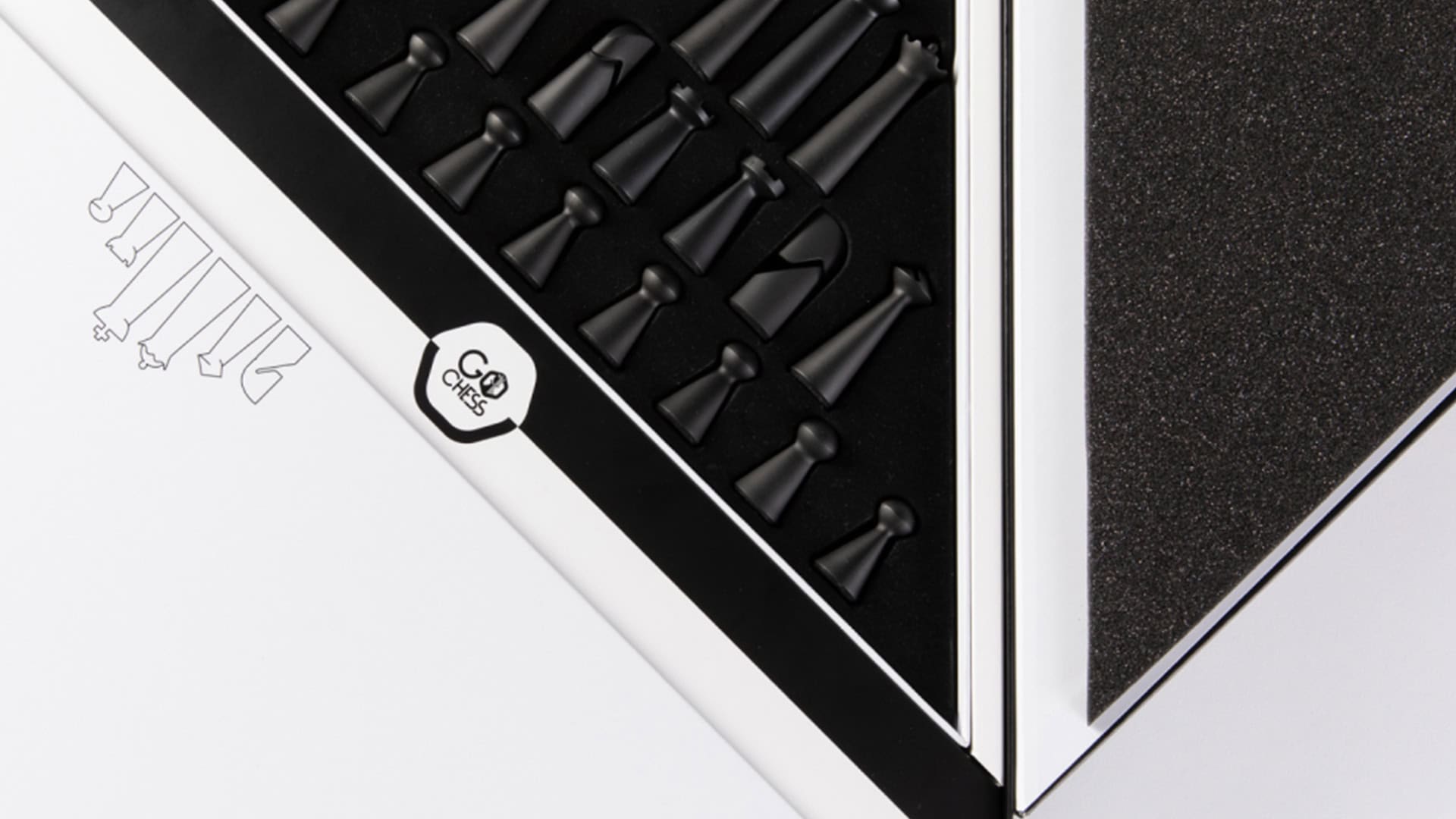 עיצוב המגשים המשולשים יוצרים תחושה כאילו כלי השח כבר הוצבו על הלוח,