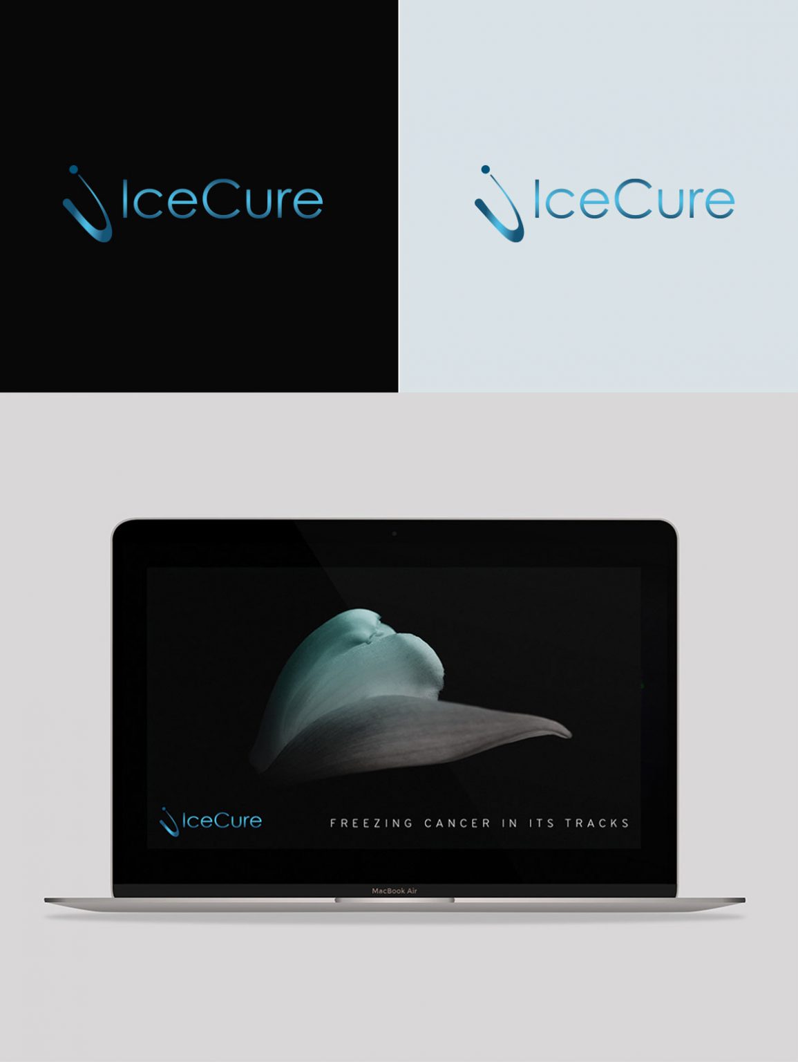 מיתוג, עיצוב גרפי ופיתוח זהות מותגית עבור חברה שפיתחה טיפול בסרטן בעזרת טכנולוגיית הקפאה חדשנית. התפיסה העיצובית ממחישה באופן אברטקי את תהליך הטיםול שהופך את הגידו לכדור קרח.
