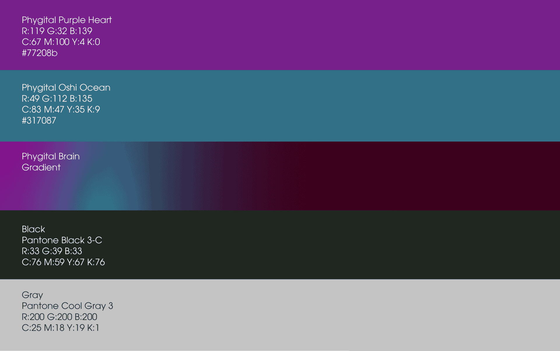 NotFromHere פיתחה את זהות המותג והBrand system עבור Phygital – חברה פורצת דרך המייצרת חוויות שמטשטשות את הגבולות בין הפיזי לדיגיטלי. המותג מבוסס על שילוב של טכנולוגיות מתקדמות עם שפה אמנותית ייחודית, שמייצרת עולם חוויתי רב־חושי. החזון של NotFromHere להציב סטנדרט חדש בתחום החוויות הפיג’יטליות – כזה שמחבר בין אנשים, תרבויות ומרחבים, ומותיר חותם רגשי וזיכרון מתמשך.מיתוג Phygital נבנה סביב ערכים של חדשנות, חופש יצירתי ותחכום עיצובי, והוא מבדל את החברה כשחקנית מובילה בזירה הבינלאומית.