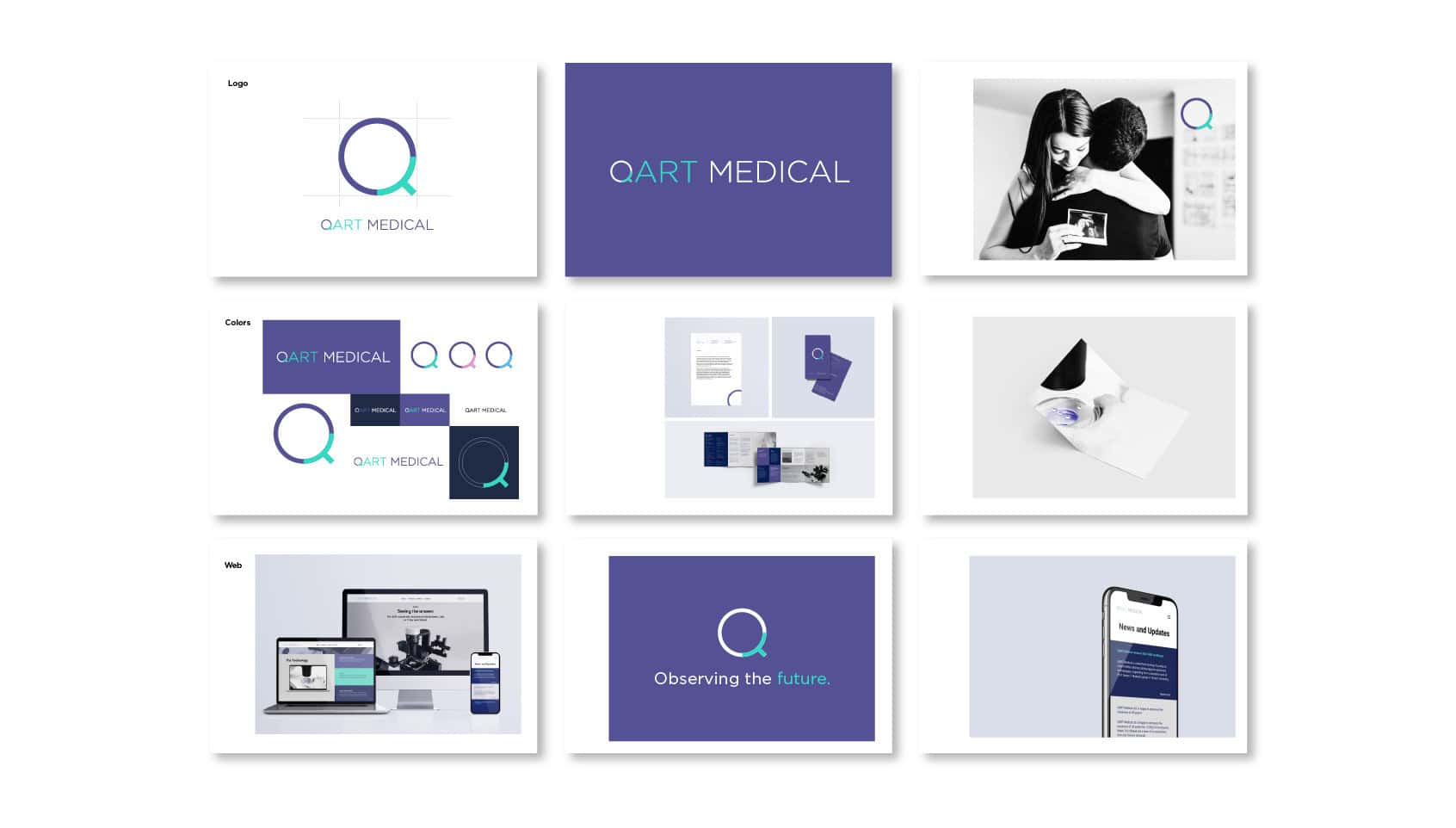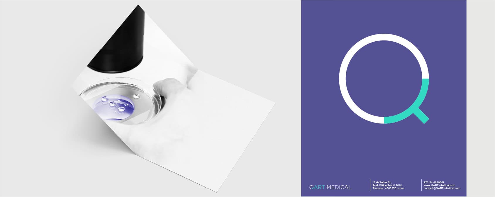 הטיפול הטיפוגרפי בלוגו בא לסייע בקריאת השם Q-Art – Quantitative Assisted Reproductive Technologies. סמל ה-Q המשמש כסמל איקוני המייצר שפה גרפית שלמה המלווה את המוצרים השונים של המותג