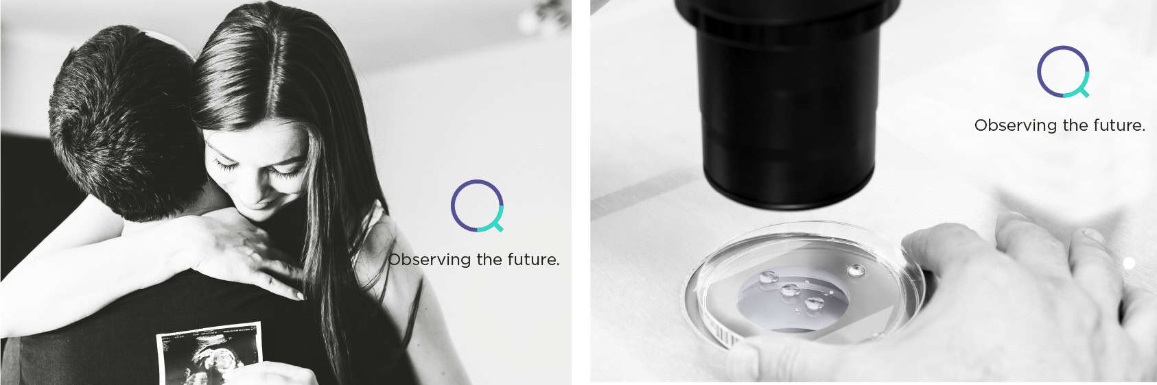 NotFromHere התמקדה באות ‘Q’ בלוגו. הטיפול הגרפי והטיפוגרפי והבחירה הצורנית של האות נועדו לספר את סיפור ההפריה החוץ גופית ולהפוך את האיקון והלוגו למשהו זכיר ומזוהה עם המותג/